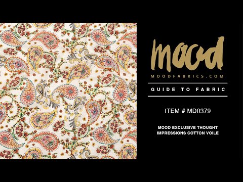 Entertaining a generous amount of subjects, our Mood Exclusive Thought Impressions Cotton Voile—similar to Kenko—is best known for having colorful ideas! From the Mood Exclusive Kenko Collection: Crisp with an ultra-soft feel, this lightweight wonder expresses a matte complexion across its digitally-printed facing. A stippling sensation, whirling paisley motifs in shades of opal, dill, port, tapestry, and phantom collide against this antique-white backdrop, composing a surreal scene; and as “...the sight sinks deeply into one's being... one feels ‘Oh! for a friend with whom to share this!'”. And, who wouldn't want to share this gem? With its anti-static make-up, breathability, and knack for drawing perspiration away from the body, it is quite the dream! Specially constructed with a compact plain weave, cylindrical-combed yarns (made up of fibers groomed to be straight) run attentively parallel to each other, comprising a strong material with a smooth surface. “...being pleasing to the eye and at the same time useful for all sorts of purposes…” translate this stunning beauty into countless silhouettes—taking inspiration from its fluid, billowy drape (and the poetic writings of Yoshida Kenko!): Sew together free-flowing looks, figuring full garments such as a dress with a key-hole neckline, a tank or top perfect for lounging around in, even bring it to drapery, and more! Also great for A-line garments, check out The Bluebell Dress free sewing pattern (made from cotton voile!) offered on our Mood Sewciety blog. Very sheer, a lining is necessary for opacity.