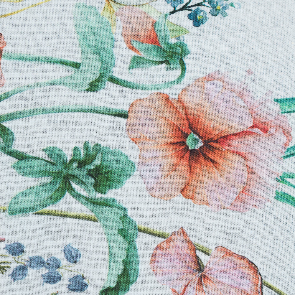 Our beautiful botanical Mood Exclusive La Marche des Fleurs White Cotton Voile is just the piece for spring and summer. A realistic illustration of wild flowers bloom along one selvage edge forming a single border print. Entitled La Marche des Fleurs, which translates to "the flower walk", this print's flowers are all lined up and ready to go, marching along the promenade on a breezy spring day or nippy autumn afternoon. Made in Spain, it has a seriously soft hand and airy drape for soft silhouettes. For those dreaming of ruffle-sleeved tops, flowing tent dresses and breezy tunics, this voile is for you. Thin and lightweight, it is made with 100% cotton ensuring breathability to keep your comfortable all season long. Translucent, a lining may be desired in some applications.