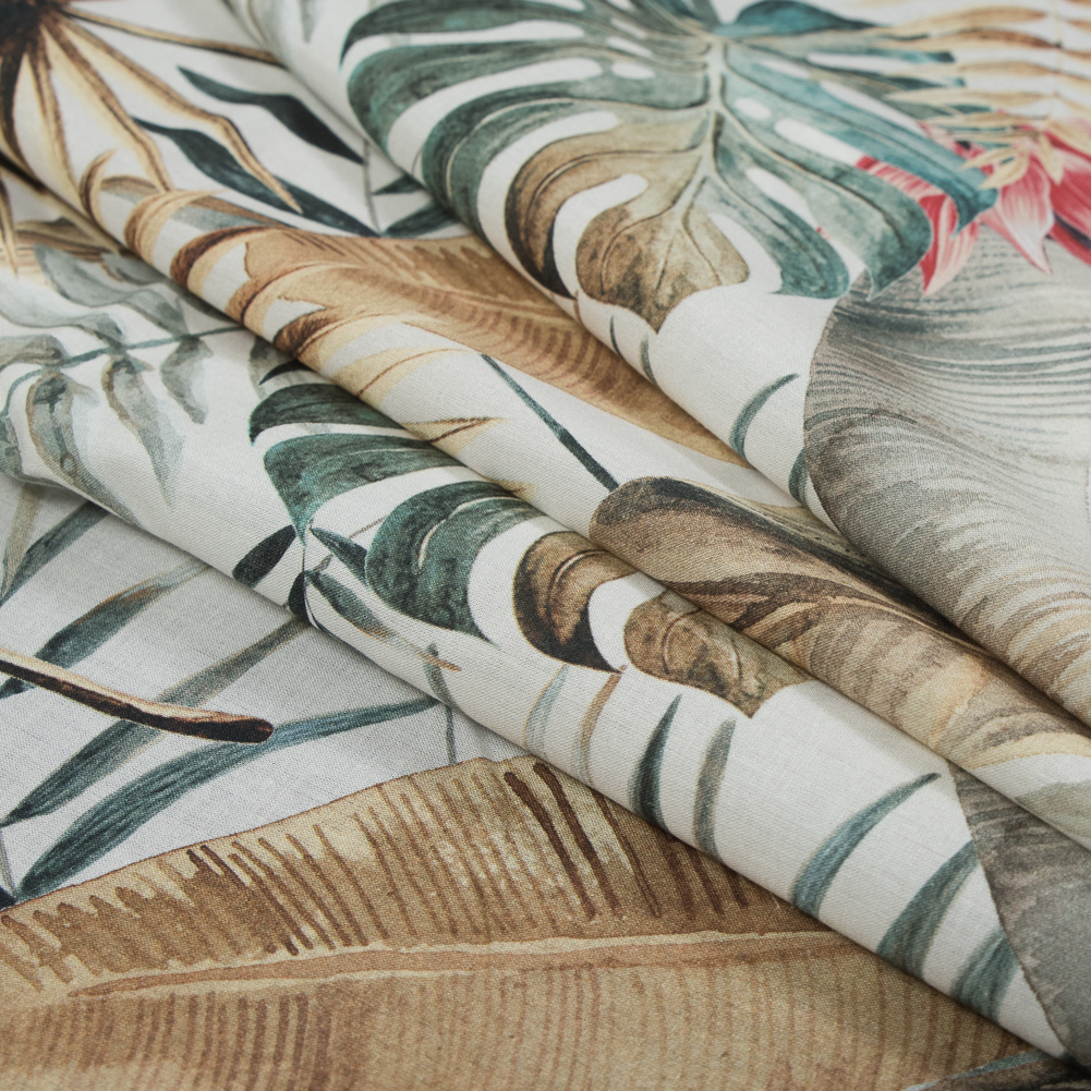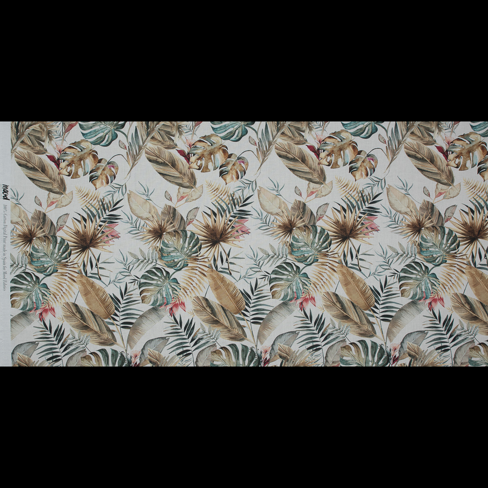 Cotton Voile - White Tropical Leaves - Efficacy of Contentment Print - Mood Exclusive Key Largo Collection