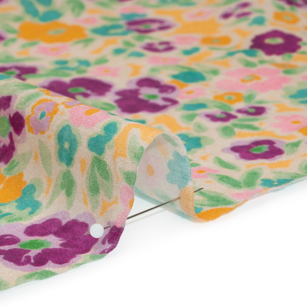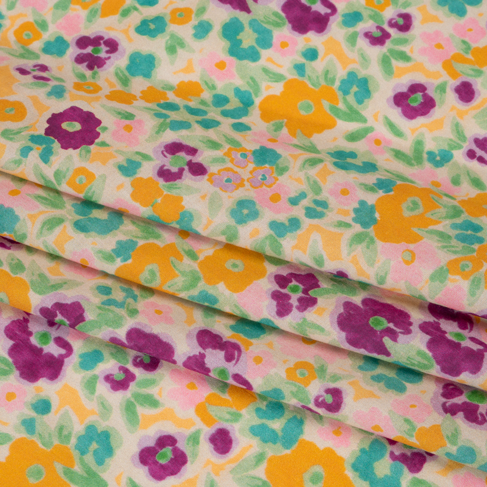 Escape to the countryside in this Midsummer Meadow Cotton Voile! Featuring a dry hand, airy drape and sheer face, it’s perfect for long days spent under the summer sun.Suggested Projects: Dresses, Skirts, TopsContent: 100% CottonStretch: No StretchOpacity: TransparentTumble into a meadow of marigold yellow, Robin’s egg blue, magenta, and blush pink florals! This cotton voile recalls carefree summers spent outside; no worries, just a breeze blowing through the air and sunbeams tickling your face. Highly breathable and moisture-absorbent, this fabric from The Chariot Collection makes dressing for summer events a breeze. The cotton voile's dry, grainy texture exudes a relaxed charm, encouraging the creation of romantic maxi skirts, billowing sundresses, fresh blouses, and more. As it is transparent, a lining may be necessary for certain applications.