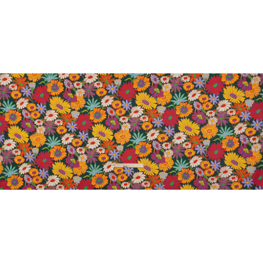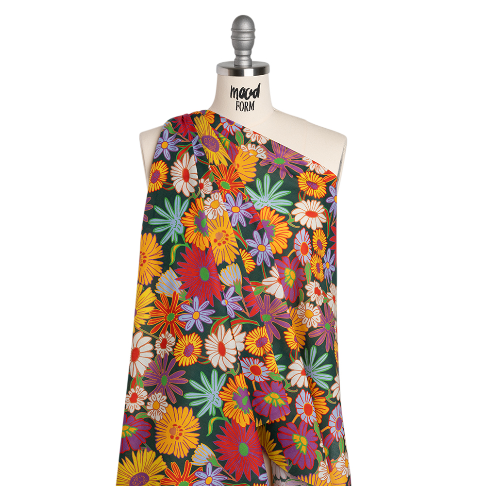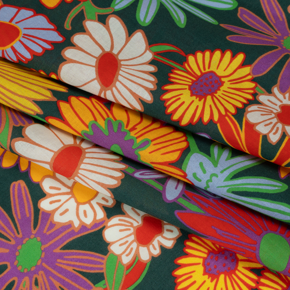 Cotton Voile - Yellow, Purple and Dark Green Funky Florals - Designer Deadstock