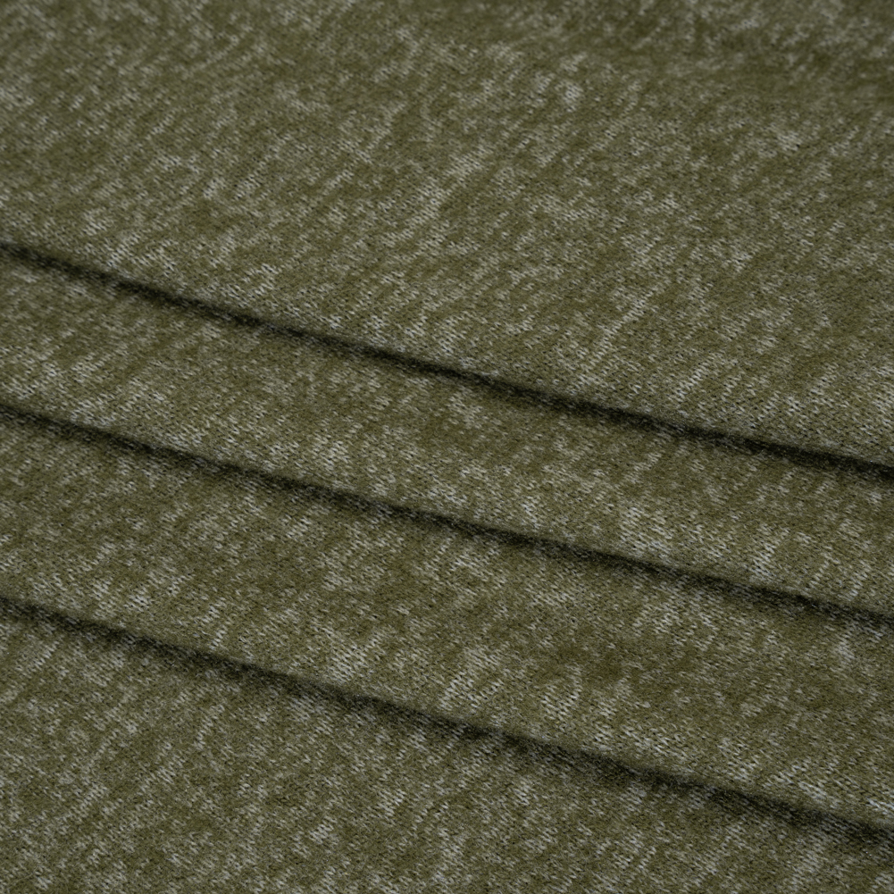 Wrap yourself up in the earthy elegance of this Heathered Moss Green Cozy Brushed Stretch Rayon Sweater Knit—featuring a super soft hand and fluid drape.Suggested Projects: Cardigans, Pants, Skirts, LoungewearContent: 74% Rayon, 21% Polyester, 5% ElastaneStretch: 75% Weftwise, 50% WarpwiseOpacity: TranslucentSink into the serene embrace of this heathered moss green knit, like sunlight filtering through a tranquil forest canopy. A brushed finish gives this sweater knit a luxuriously soft, fuzzy hand and a fluid drape, making it perfect for the coziest of creations. Its moderate all-way stretch invites slinky cardigans, flowing wide-leg pants, wrap skirts, and the softest loungewear—ideal for crisp autumn days or relaxing nights in. Translucent, we recommend layering or self-lining for full opacity.