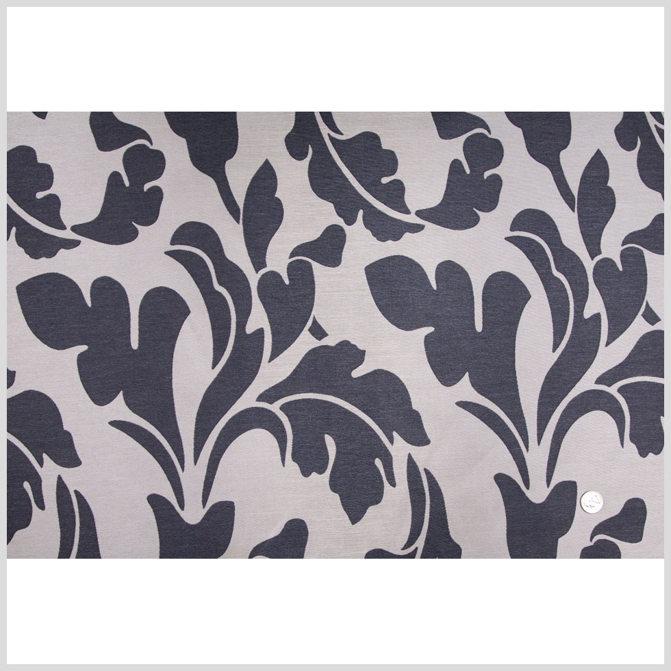 This is a woven polyester in black with a large cream woven, leaf pattern.