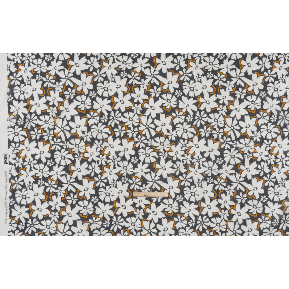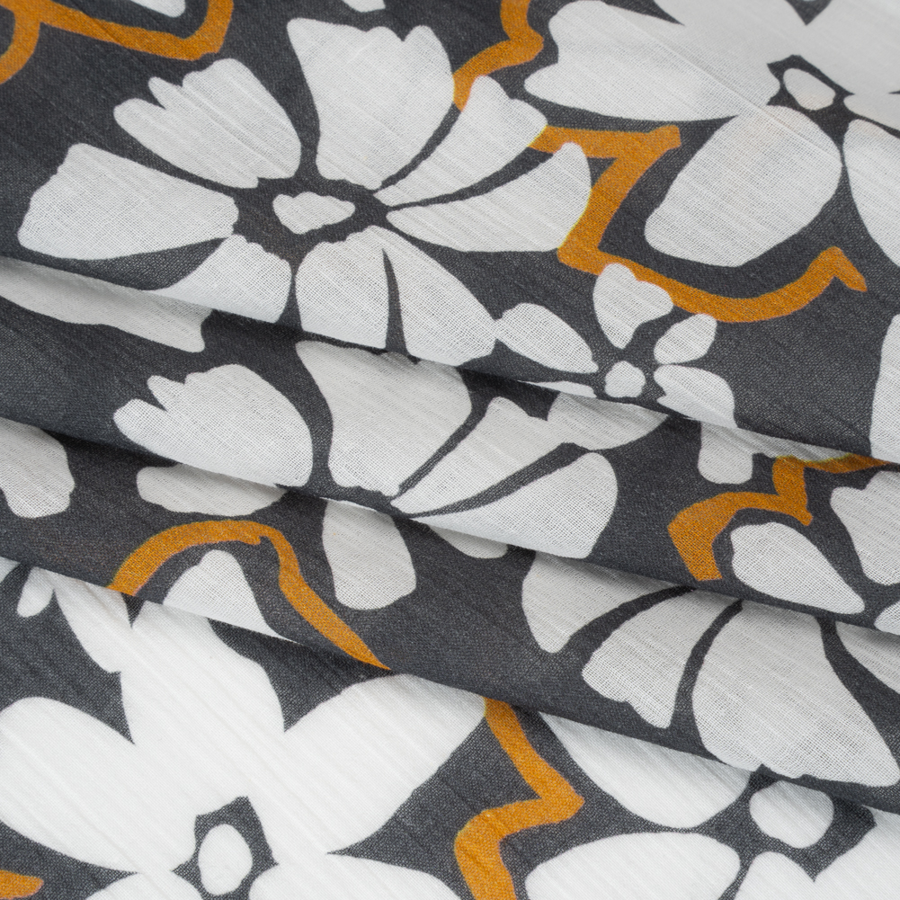 Crinkled Cotton Gauzy Woven - Charcoal Gray, Golden Orange and White Floral - Mood Exclusive Spring Squall Print