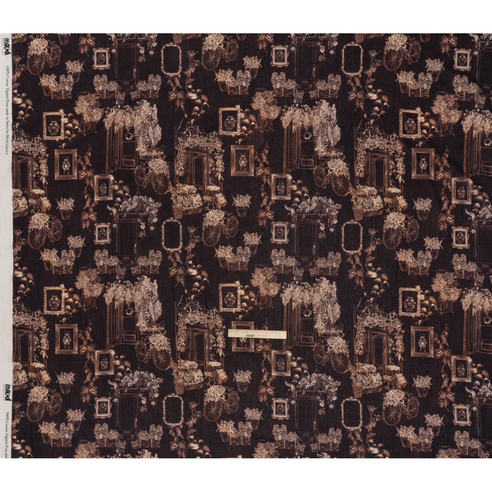 Crinkled Cotton Gauzy Woven - Dark Brown and Cream Flowers and Framed Photos - Mood Exclusive Coffee Date Print