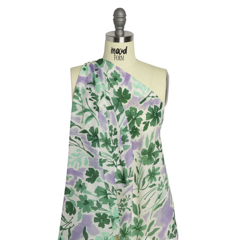 Crinkled Cotton Gauzy Woven Print - Lavender and Green Floral - Mood Exclusive Abundance Mindset