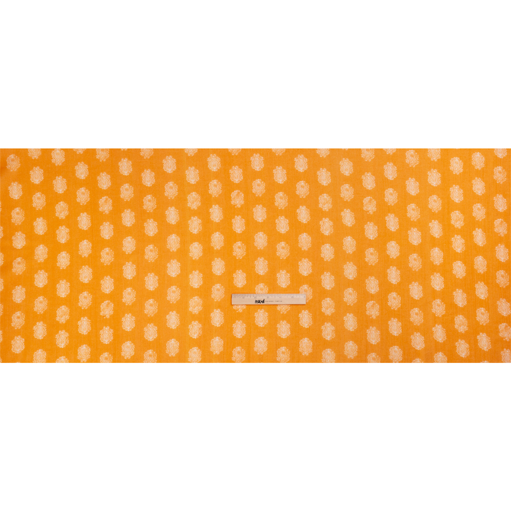 Perhaps this sweet Mood Exclusive Perhaps Paisleys Crinkled Cotton Gauzy Woven is just the fabric you're looking for! White paisley pennants organize themselves across a bright orange surface. The crinkled face and 100% cotton content give the fabric a gauzy feel; the hand is dry and textured by the horizontal wrinkles. The lightweight drape feels cool on your skin as you don airy skirts, puff-sleeved sundresses, shirred blouses, and more. As this fabric is translucent, a lining is recommended if total opacity is desired.