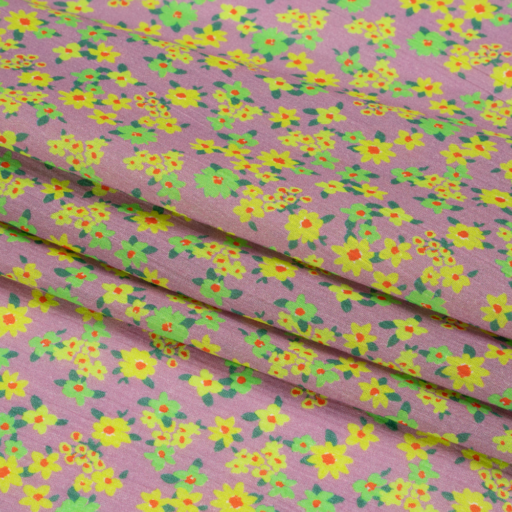 Crinkled Cotton Gauzy Woven Print - Yellow, Green and Lavender - Mood Exclusive Little Lillies
