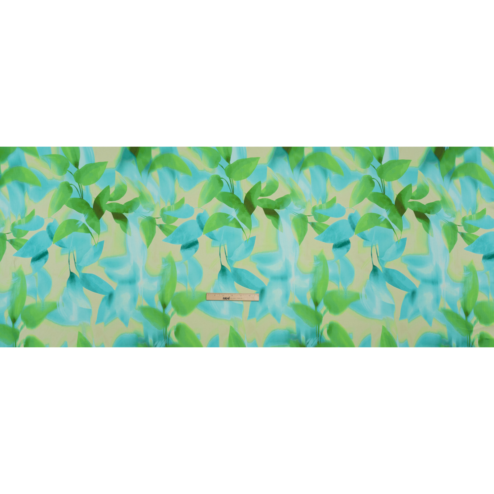 Crinkled Polyester Charmeuse - Turquoise, Grass and Tea Green Leaves - Made in Italy