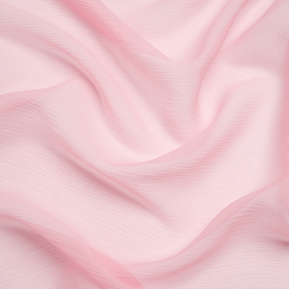 Mood's Crinkled Silk Chiffon - Candy Pink - Premium Collection is a sheer, lightweight and ethereal fabric with a subtle, crinkled texture. An excellent choice for fluid, top-weight garments, overlays, flowing scarves, and sheer insets such as ruffle details and draped extensions. Note: Dye lots are subject to change up to 10% in either direction. Ordering swatches is HIGHLY recommended for these products.