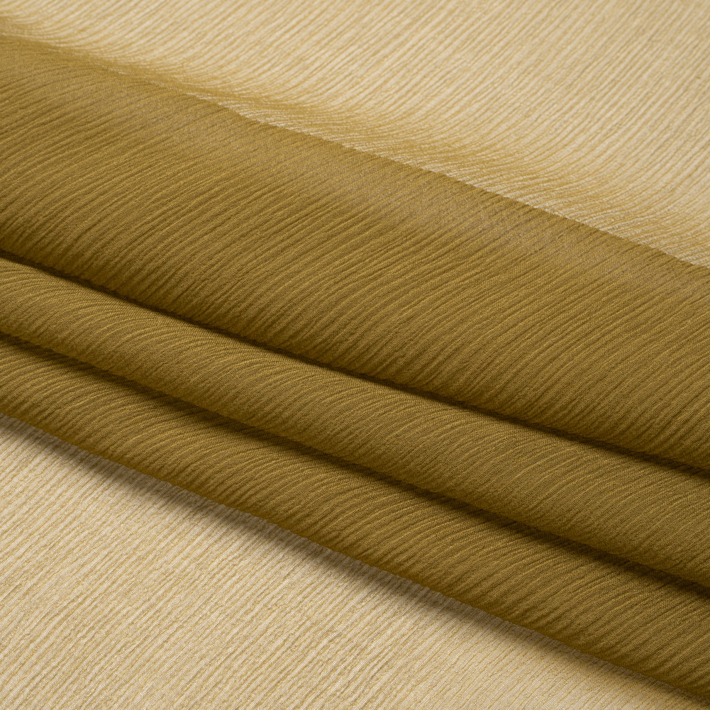 Mood's Crinkled Silk Chiffon - Fir Green - Premium Collection is a sheer, lightweight and ethereal fabric with a subtle, crinkled texture. An excellent choice for fluid, top-weight garments, overlays, flowing scarves, and sheer insets such as ruffle details and draped extensions. Note: Dye lots are subject to change up to 10% in either direction. Ordering swatches is HIGHLY recommended for these products.