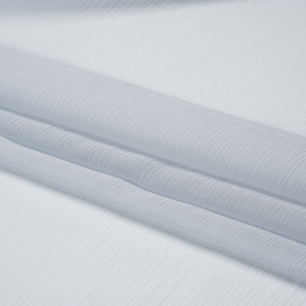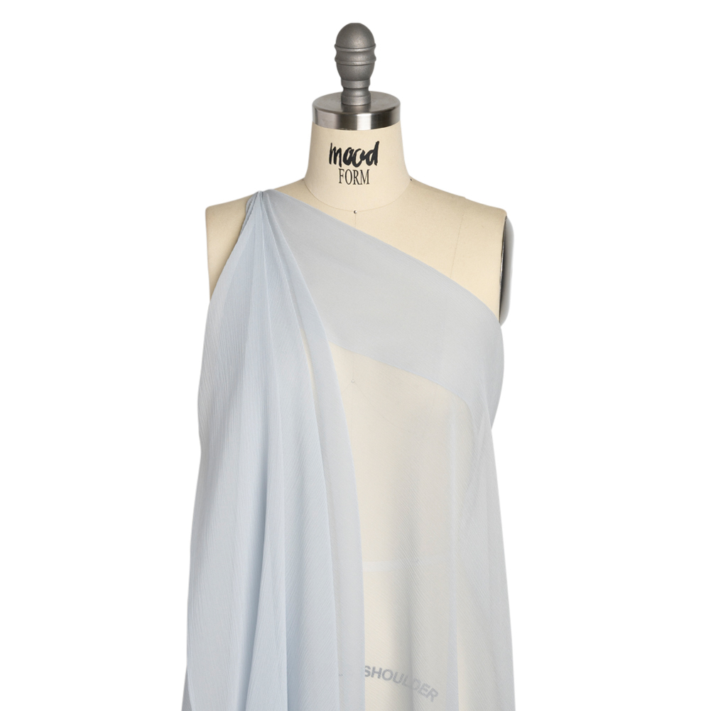 Mood's Crinkled Silk Chiffon - Gray Dawn - Premium Collection is a sheer, lightweight and ethereal fabric with a subtle, crinkled texture. An excellent choice for fluid, top-weight garments, overlays, flowing scarves, and sheer insets such as ruffle details and draped extensions. Note: Dye lots are subject to change up to 10% in either direction. Ordering swatches is HIGHLY recommended for these products.
