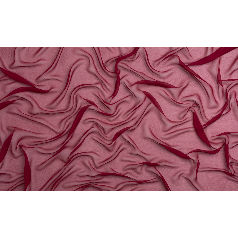 Mood's Crinkled Silk Chiffon - Wine - Premium Collection is a sheer, lightweight and ethereal fabric with a subtle, crinkled texture. An excellent choice for fluid, top-weight garments, overlays, flowing scarves, and sheer insets such as ruffle details and draped extensions. Note: Dye lots are subject to change up to 10% in either direction. Ordering swatches is HIGHLY recommended for these products.