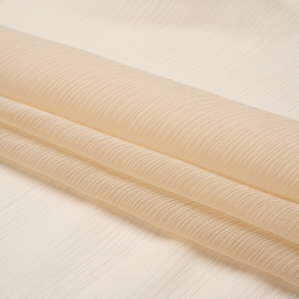 Mood's Crinkled Silk Chiffon - Winter Wheat - Premium Collection is a sheer, lightweight and ethereal fabric with a subtle, crinkled texture. An excellent choice for fluid, top-weight garments, overlays, flowing scarves, and sheer insets such as ruffle details and draped extensions. Note: Dye lots are subject to change up to 10% in either direction. Ordering swatches is HIGHLY recommended for these products.