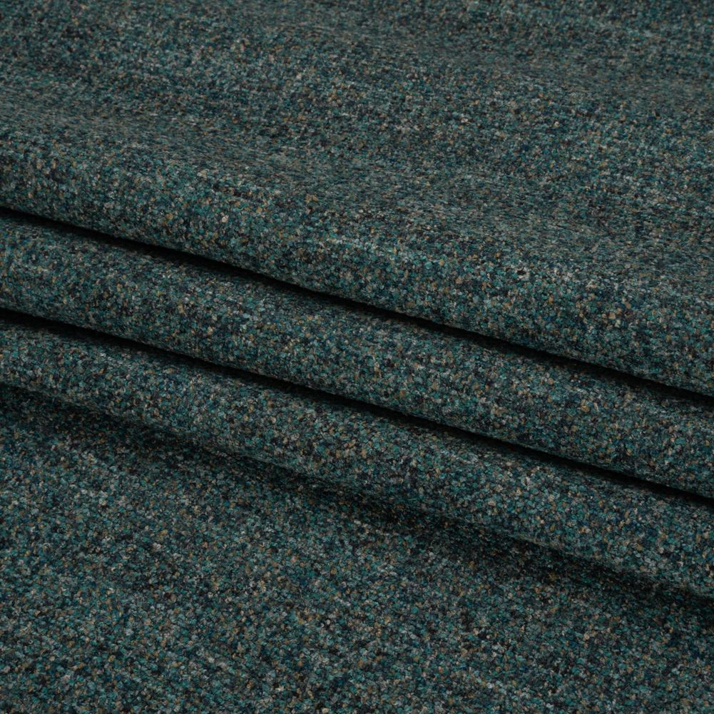 Create to-die-for upholstery with this Crypton Abalone Tweedy Stain Resistant Upholstery Boucle! The face is densely populated with small navy, teal, tan, and light blue dots, creating a soft and pebbly hand that feels similar to a tweed. It features a supple drape and complete opacity. Messy playdates, fun wine nights, dinners on the couch, and more; enjoy this fabric in any situation thanks to its resistance to stains! Imagine curling up with a book on an armchair, watching a movie on a comfy sectional, kicking your feet up on an ottoman, and more.