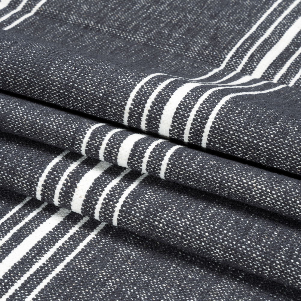 Make your house feel like a home with this comfy Crypton Charcoal Striped Stain Resistant Polyester and Linen Chenille Upholstery Woven. Textured with a soft and pebbly hand, white peeks through the dark gray face as thin white lines race horizontally. The simple pattern offers an understated charm to relaxed living spaces, while the stain-resistant surface welcomes the chaos of a busy home. Medium in weight and featuring a malleable drape, reupholster cozy sectionals, sunroom loveseats, ottomans, and more!