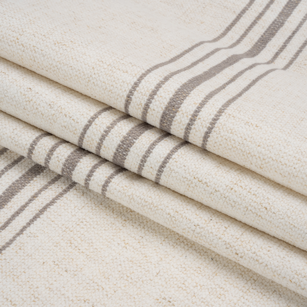 Crypton Stone on White Striped Stain Resistant Polyester and Linen Chenille Upholstery Woven