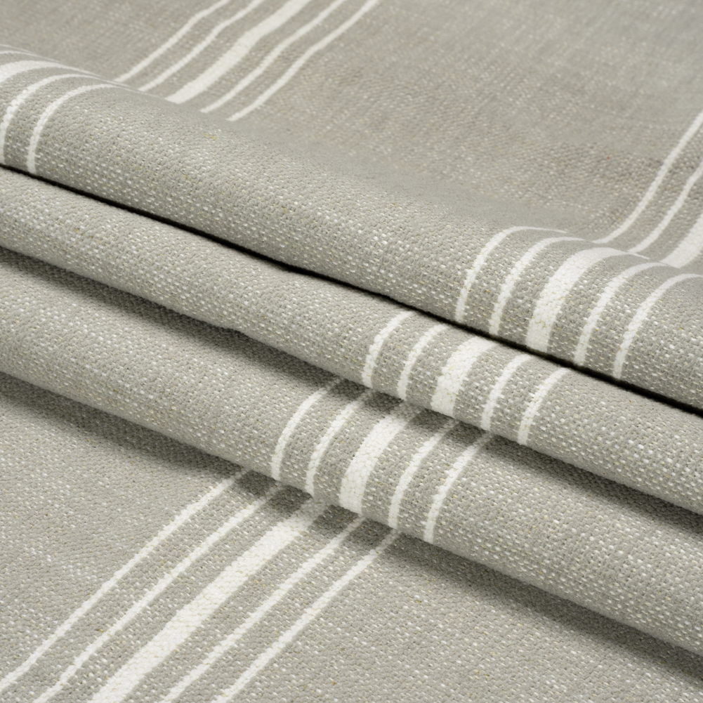 It is set in stone: this Crypton Stone Striped Stain Resistant Polyester and Linen Chenille Upholstery Woven is for you! Textured with a soft and pebbly hand, white peeks through the light gray face as thin white lines race horizontally.