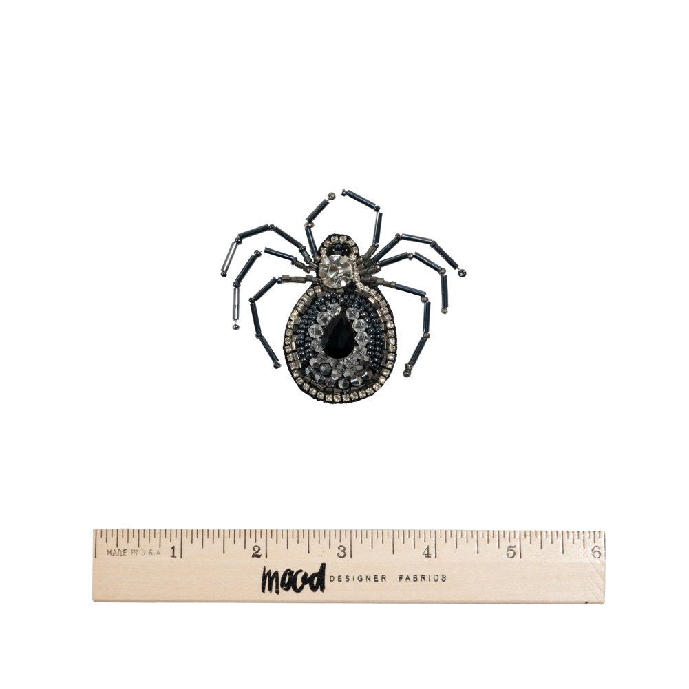 For dark academia-inspired projects and autumnal designs, this Crystal, Gunmetal and Iron Spider Rhinestone and Glass Beaded Appliqué delivers a spooky elegance. Measuring 2.625 inches by 2.875 inches overall, this spider-shaped appliqué is composed of black, gunmetal gray, and clear glass beads as well as black and crystal rhinestones arranged in a dimensional dome-shaped body, plus eight flexible beaded wire legs to pose as you please.Individually hand-beaded, these appliqués are truly one-of-a-kind, perfect for adding a couture touch to every garment you make. Dress up a denim jacket or hat, decorate the lapels of a shirt or blazer, or apply a glittering accent to gowns and special occasion dresses—every appliqué is crawling with possibilities.Shop the entirety of the The Alice Collection here.