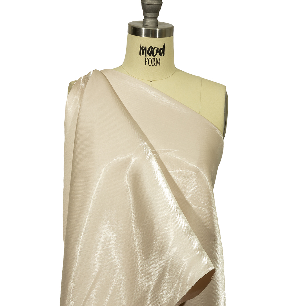 As neutral confections appear on every red carpet, make one for yourself with our Virve Beige Crystal Luminous Polyester Mikado! Both sides feature an elegant beige color, with the face presenting an alluring, otherworldly shine. Pliable and somewhat voluminous in drape, craft structured evening gowns, blazers, trousers, or jumpsuits. While opaque, add a lining for additional structure and a polished finish when desired.