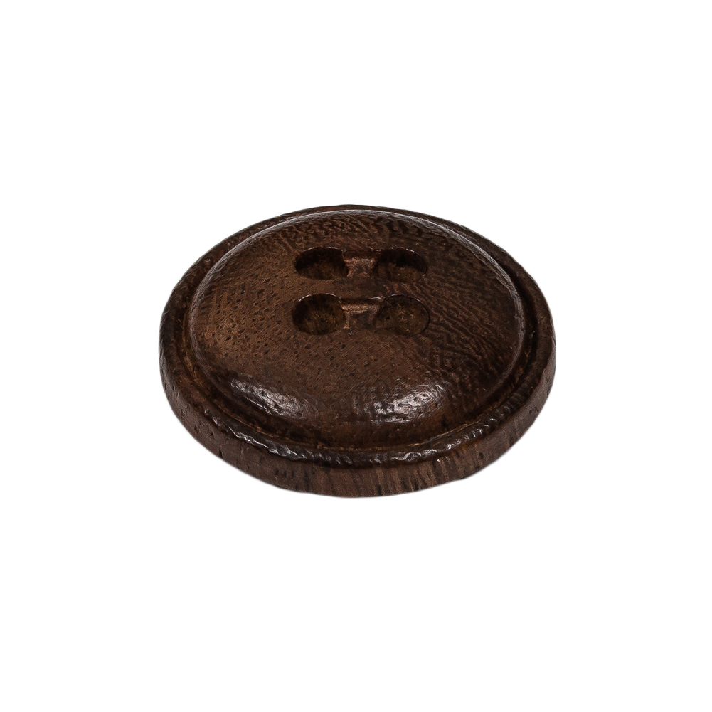 Here we have a Deep Brown Dome Shaped 4-Hole Wood Button with a dome-shaped face and accented rims, finished with four central holes and a flat backing.