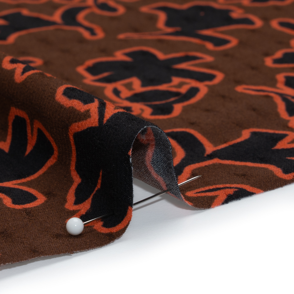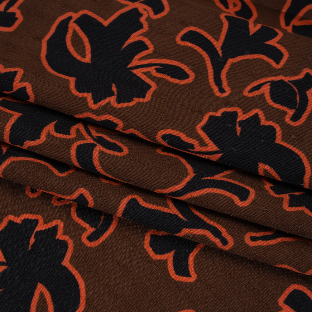 Dotted Rayon Jacquard - Brown, Orange and Black Floral Silhouettes - Made in Italy