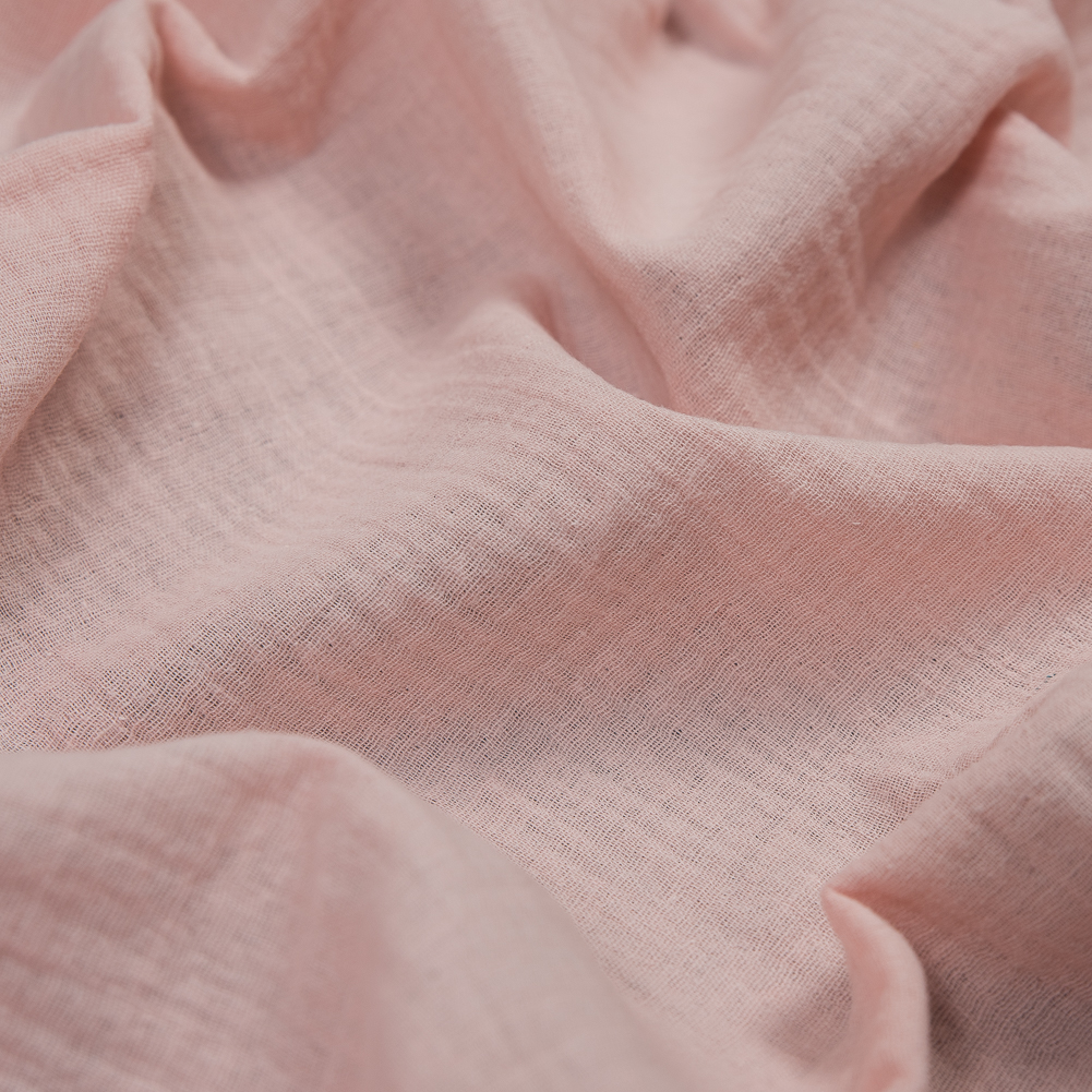 Let the subtle peachy tone of this Blush Double Cotton Gauze take you into the warmer months. Seriously soft and airy, this woven is ready for spring and summer. Its relaxed drape adds to its overall casual feel as it falls into soft silhouettes. Flowing tunics, layered tanks, and high-low dresses can all be made from the comfortable woven. The double layers adds to its thickness, yet the gauze still remains translucent. Insert a lining for more opacity.Please Note: The dye lot of this fabric has changed as of March 2022. Additionally, our fabric quality has changed to the slightest degree. However, they become softer and more crinkled with each wash, ensuring an ultra-comfortable experience. If you had previously ordered this material, please order a swatch to ensure you love the new texture as much as we do and that the new dye lot meets your color requirements.