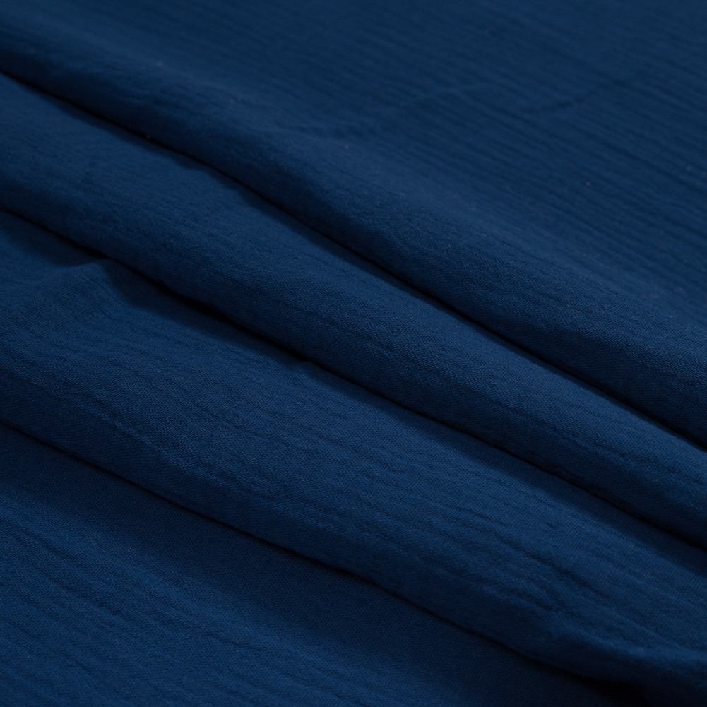Fall into a deep blue with this Royal Blue Double Cotton Gauze. Seriously soft and airy, this woven is ready for spring and summer. Its relaxed drape adds to its overall casual feel as it falls into soft silhouettes. Flowing tunics, layered tanks, and high-low dresses can all be made from the comfortable woven. The double layers adds to its thickness, yet the gauze still remains translucent. Insert a lining for more opacity.Please Note: The dye lot of this fabric has changed as of May 2022. Additionally, our fabric quality has changed to the slightest degree. However, they become softer and more crinkled with each wash, ensuring an ultra-comfortable experience. If you had previously ordered this material, please order a swatch to ensure you love the new texture as much as we do, and that the new dye lot meets your color requirements.