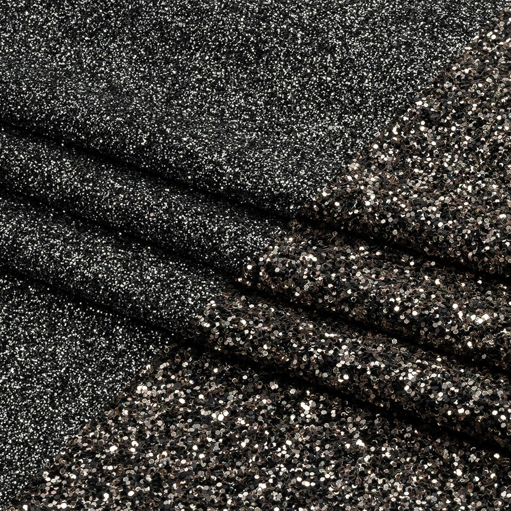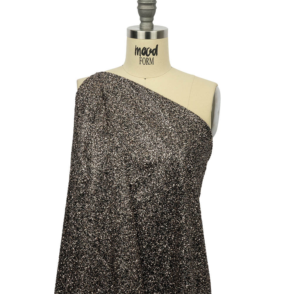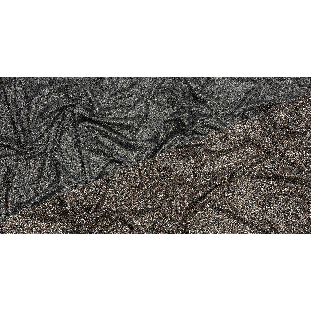 Two timeless colors started a collaboration: check out this Black and Bronze Double-Faced Glitter Tulle! Featuring a crisp hand and weighted drape.