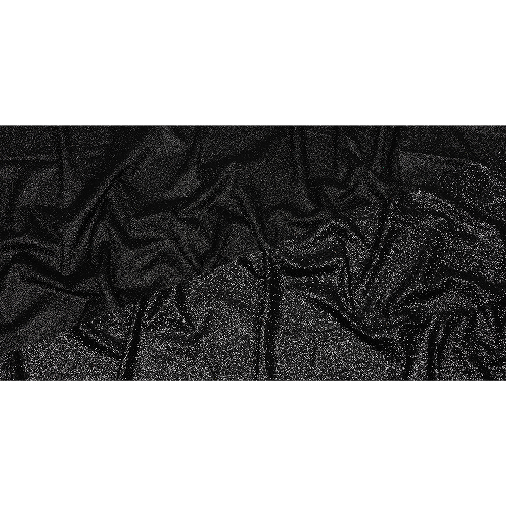 There is nothing more timeless than this Black Double-Faced Glitter Tulle. Featuring a crisp hand and weighted drape.Suggested Projects: Eveningwear, Dresses, Skirts, CostumesContent: 100% PolyesterStretch: NoneOpacity: OpaqueA black tulle base is adorned with black glitter on both sides, with one side showing a finer glitter than the other. The crisp hand and weighted drape make it an excellent choice for evening gowns, skirts, ball gowns, and bold capes, or use it for special occasion dresses, such as for weddings or quinceañeras. Opaque, a lining can be used for comfort if desired.
