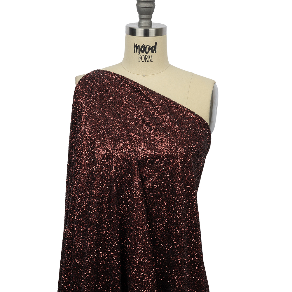 It's always time for rich jewel tones like this Burgundy Double-Faced Glitter Tulle! Featuring a crisp hand and weighted drape.Suggested Projects: Eveningwear, Dresses, Skirts, CostumesContent: 100% PolyesterStretch: NoneOpacity: OpaqueA wine-red tulle base is adorned with burgundy glitter on both sides, with one side showing a finer glitter than the other. The crisp hand and weighted drape make it an excellent choice for evening gowns, skirts, ball gowns, and bold capes, or use it for special occasion dresses, such as for weddings or quinceañeras. Opaque, a lining can be used for comfort if desired.