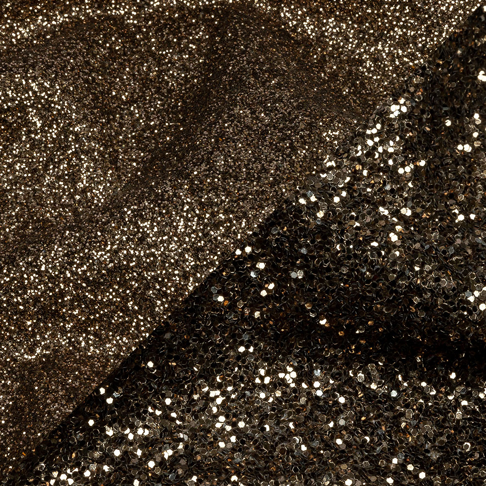 Sink your teeth into exceptional sparkle with this Mink Double-Faced Glitter Tulle. Featuring a crisp hand and weighted drape.Suggested Projects: Eveningwear, Dresses, Skirts, CostumesContent: 100% PolyesterStretch: NoneOpacity: OpaqueA gray-brown tulle base is adorned with brown glitter on both sides, with one side showing a finer glitter than the other. The crisp hand and weighted drape make it an excellent choice for evening gowns, skirts, ball gowns, and bold capes, or use it for special occasion dresses, such as for weddings or quinceañeras. Opaque, a lining can be used for comfort if desired.