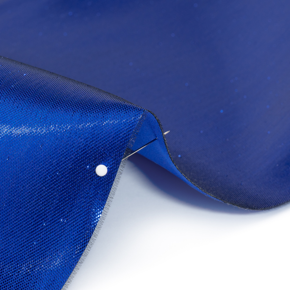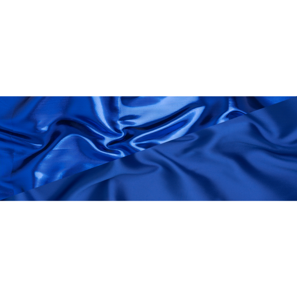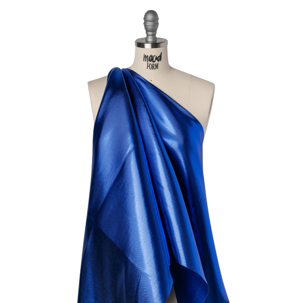 Command the attention of every room you step into with this Cobalt Blue Double Faced Lame Mikado—featuring a sleek hand and structured drape.Suggested Projects: Gowns, Jackets, Skirts, SuitsContent: 85% Polyester, 15% LurexStretch: NoneOpacity: OpaqueRegal elegance unfurls from this lame mikado. Double-sided and dazzling, one face shimmers in metallic cobalt blue while the reverse glows in luminous cobalt blue—perfect for eveningwear that demands attention. With a sleek hand and structured drape, it transforms effortlessly into crisp suit sets, sculpted evening gowns, tailored jackets, and voluminous circle skirts. Fully opaque, a lining can be added for a polished finish, though it isn’t strictly necessary.