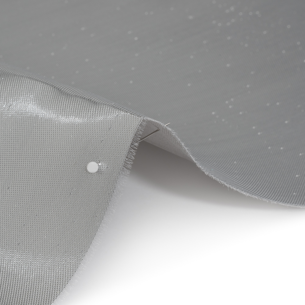 Your stitches will soar across this Dove Gray Double Faced Lame Mikado—featuring a sleek hand and structured drape.Suggested Projects: Gowns, Jackets, Skirts, SuitsContent: 85% Polyester, 15% LurexStretch: NoneOpacity: OpaqueFeel at peace, and more than welcome, at the most gallant events in this lame mikado. Double-sided and dazzling, one face shimmers in metallic silver while the reverse glows in luminous dove gray—perfect for eveningwear that demands attention. With a sleek hand and structured drape, it transforms effortlessly into crisp suit sets, sculpted evening gowns, tailored jackets, and voluminous circle skirts. Fully opaque, a lining can be added for a polished finish, though it isn’t strictly necessary.