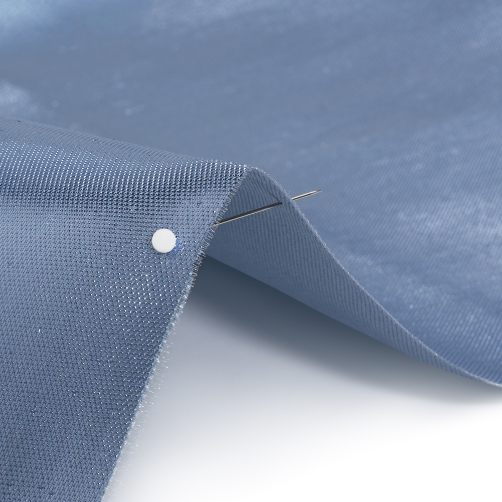 The luminous nature of this Muted Blue Double Faced Lame Mikado is sure to help you scry your next design—featuring a sleek hand and structured drape.Suggested Projects: Gowns, Jackets, Skirts, SuitsContent: 85% Polyester, 15% LurexStretch: NoneOpacity: OpaqueWe’ve seen your future, and it includes this magical lame mikado. Double-sided and dazzling, one face shimmers in metallic sky blue while the reverse glows in luminous muted blue—perfect for eveningwear that demands attention. With a sleek hand and structured drape, it transforms effortlessly into crisp suit sets, sculpted evening gowns, tailored jackets, and voluminous circle skirts. Fully opaque, a lining can be added for a polished finish, though it isn’t strictly necessary.