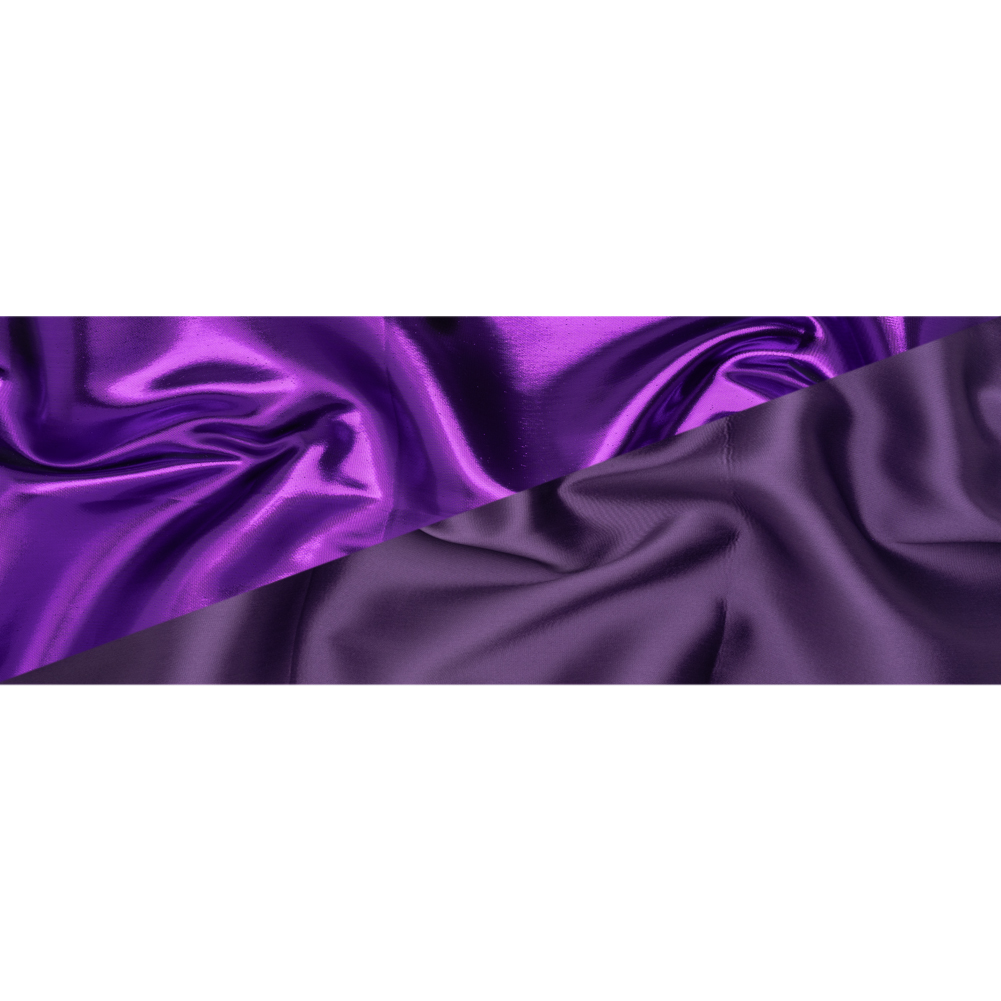 Get ready to rule over your style with this Purple Double Faced Lame Mikado—featuring a sleek hand and structured drape.Suggested Projects: Gowns, Jackets, Skirts, SuitsContent: 85% Polyester, 15% LurexStretch: NoneOpacity: OpaqueThis lame mikado doesn’t need jewels to shine bright. Double-sided and dazzling, one face shimmers in metallic purple while the reverse glows in luminous purple—perfect for eveningwear that demands attention. With a sleek hand and structured drape, it transforms effortlessly into crisp suit sets, sculpted evening gowns, tailored jackets, and voluminous circle skirts. Fully opaque, a lining can be added for a polished finish, though it isn’t strictly necessary.