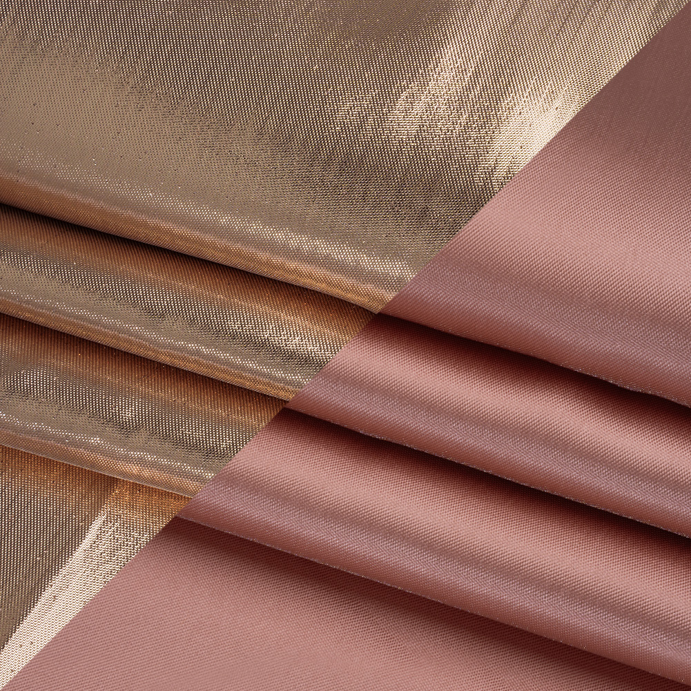 Repose in your secret garden with a book, a strong cup of tea, and this Rose Double Faced Lame Mikado—featuring a sleek hand and structured drape.Suggested Projects: Gowns, Jackets, Skirts, SuitsContent: 85% Polyester, 15% LurexStretch: NoneOpacity: OpaqueFind romance in every fold of this lame mikado. Double-sided and dazzling, one face shimmers in metallic rose gold while the reverse glows in luminous rose pink—perfect for eveningwear that demands attention. With a sleek hand and structured drape, it transforms effortlessly into crisp suit sets, sculpted evening gowns, tailored jackets, and voluminous circle skirts. Fully opaque, a lining can be added for a polished finish, though it isn’t strictly necessary.