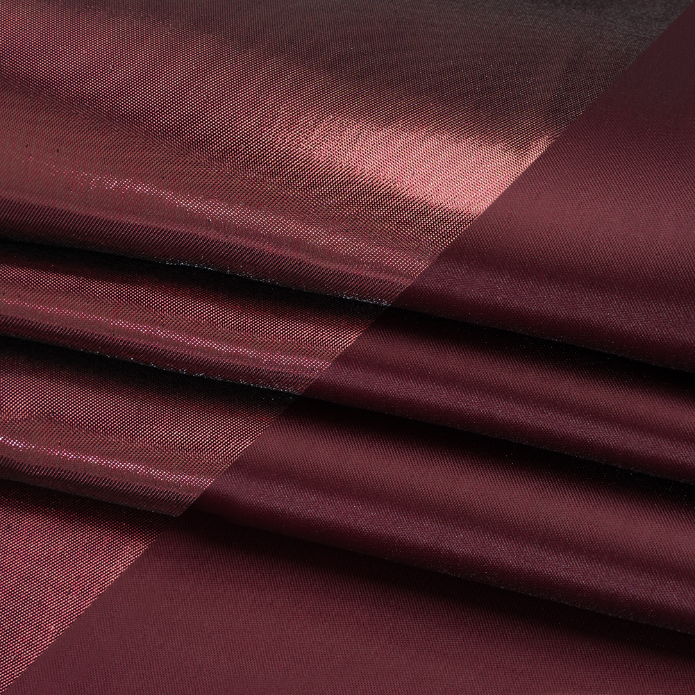 Indulge in the finer things in life—like this Wine Double Faced Lame Mikado, featuring a sleek hand and structured drape.Suggested Projects: Gowns, Jackets, Skirts, SuitsContent: 85% Polyester, 15% LurexStretch: NoneOpacity: OpaqueThis lame mikado carries notes of romance, passion, and grand masterpieces to come. Double-sided and dazzling, one face shimmers in metallic wine red while the reverse glows in luminous wine red—perfect for eveningwear that demands attention. With a sleek hand and structured drape, it transforms effortlessly into crisp suit sets, sculpted evening gowns, tailored jackets, and voluminous circle skirts. Fully opaque, a lining can be added for a polished finish, though it isn’t strictly necessary.