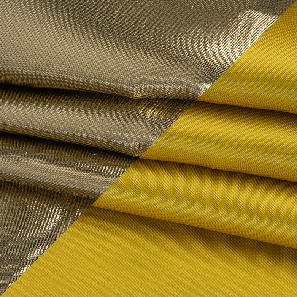Spin gowns of pure sunshine out of this Yellow Double Faced Lame Mikado—featuring a sleek hand and structured drape.Suggested Projects: Gowns, Jackets, Skirts, SuitsContent: 85% Polyester, 15% LurexStretch: NoneOpacity: OpaqueMidsummer skies unfurl with every fold of this lame mikado. Double-sided and dazzling, one face shimmers in metallic gold while the reverse glows in luminous yellow—perfect for eveningwear that demands attention. With a sleek hand and structured drape, it transforms effortlessly into crisp suit sets, sculpted evening gowns, tailored jackets, and voluminous circle skirts. Fully opaque, a lining can be added for a polished finish, though it isn’t strictly necessary.