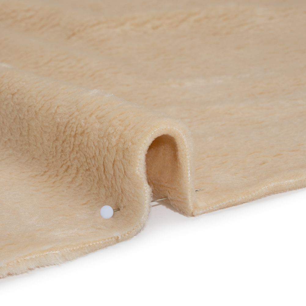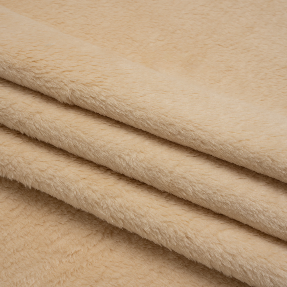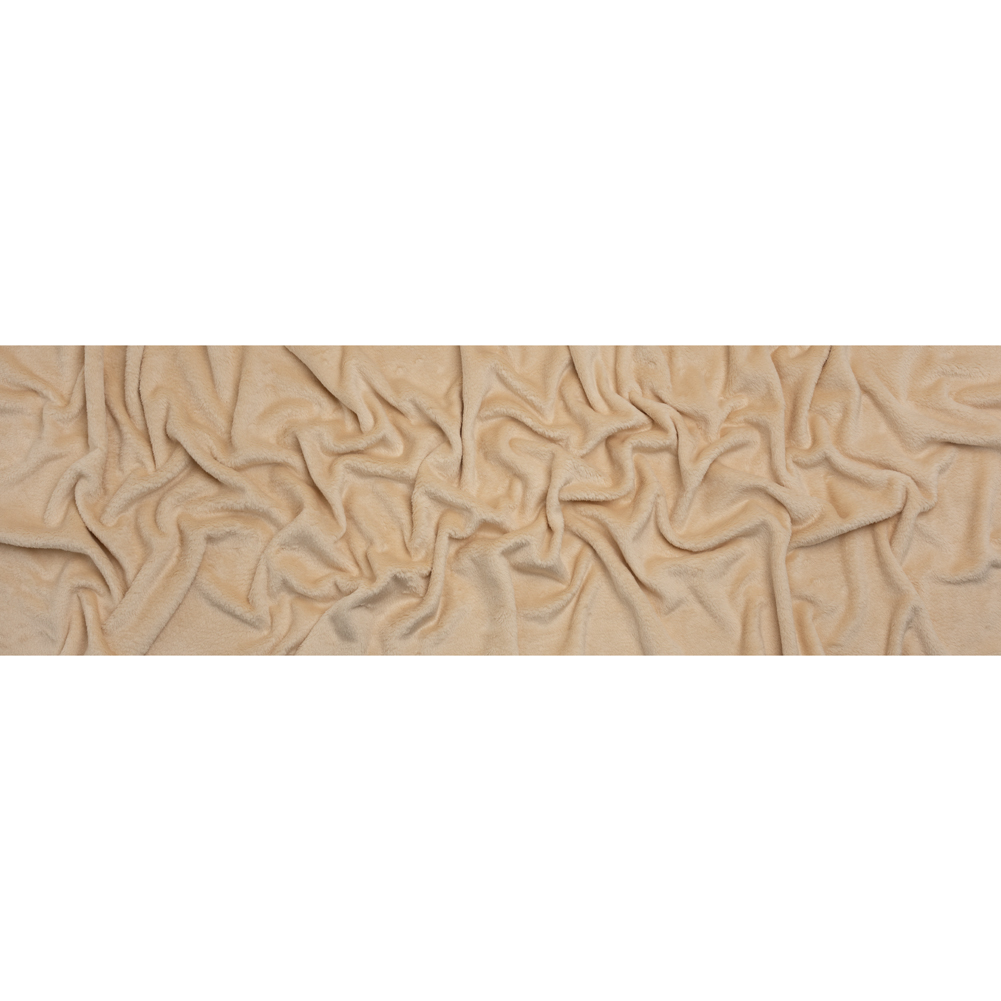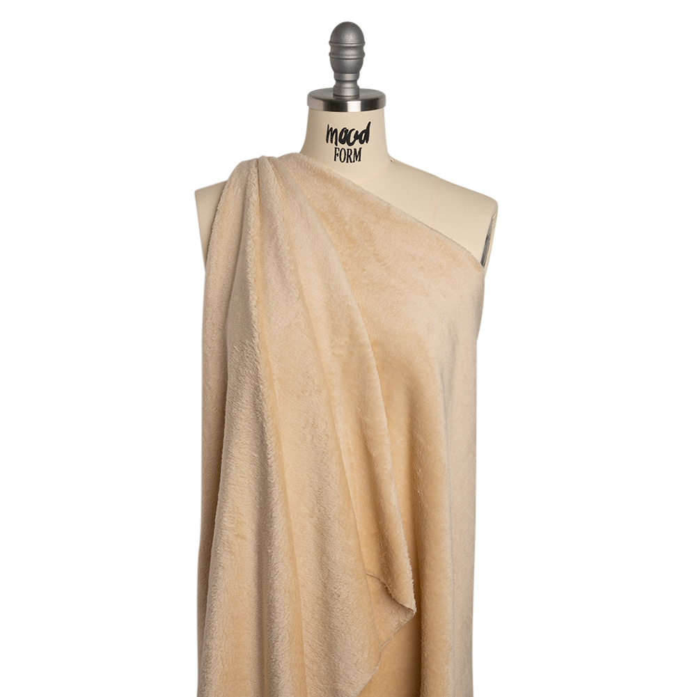 Take in the hush of a winter shore, bundled up in this Beige Double Faced Minky Fleece—featuring a super-soft hand and fluid drape.Suggested Projects: Hoodies, Pants, Pajama Tops, Blankets, Plush ToysContent: 100% PolyesterStretch: 15% WeftwiseOpacity: OpaqueCreate your own cozy corner in every room you enter wearing this beige minky fleece. A super-soft hand combines with a 15% stretch through the weft and a fluid drape that you’ll yearn to wrap yourself up in—and never want to take off! This double-faced fleece is ideal for luxurious loungewear pieces such as wide-leg pajama pants, oversized robes, and button-up pajama tops that you’ll want to lay the day away in, along with cozy blankets and quilt backings to keep you warm any time. Opaque, a lining isn’t necessary.