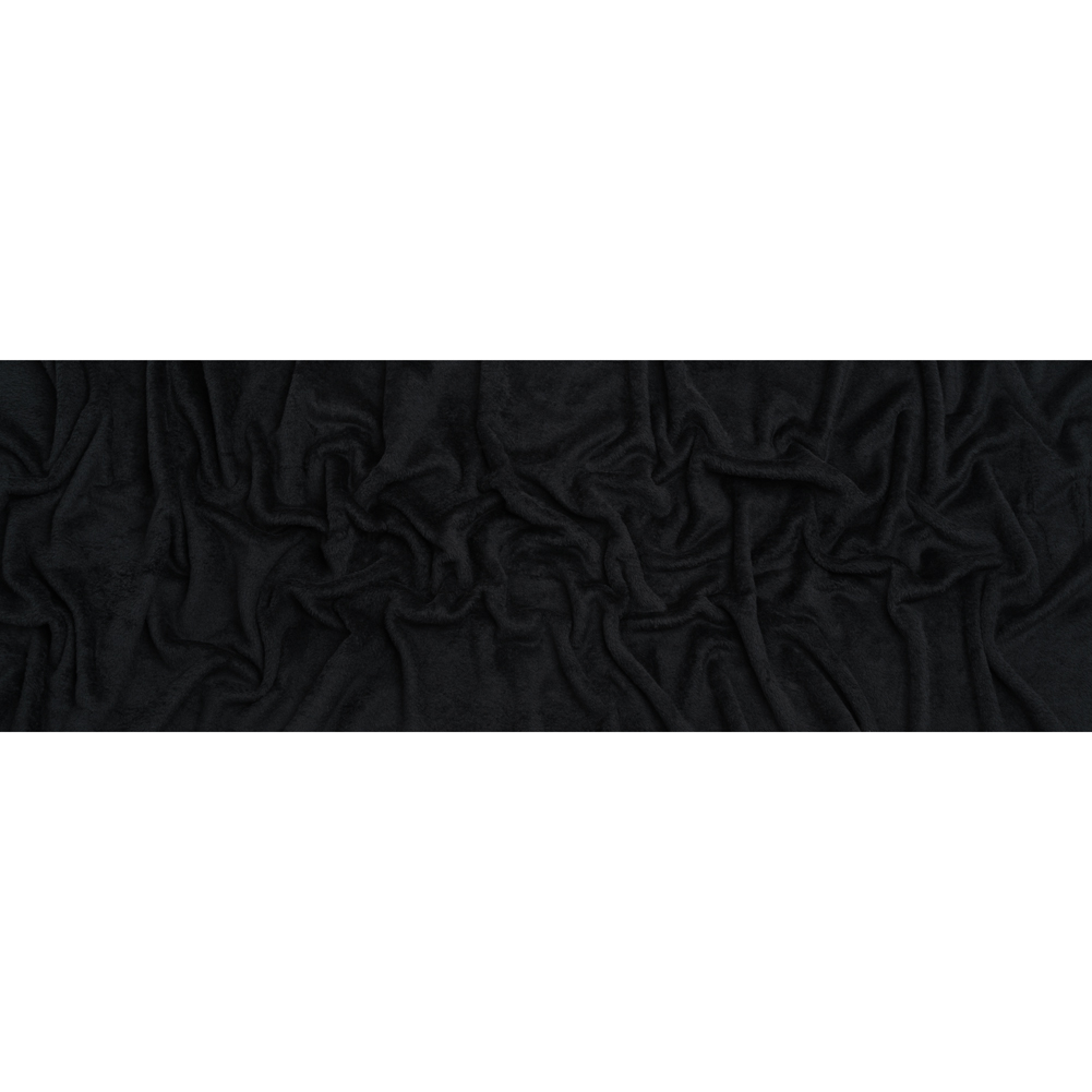 Wrap yourself up under the cover of darkness with this Black Double Faced Minky Fleece—featuring a super-soft hand and fluid drape.Suggested Projects: Hoodies, Pants, Pajama Tops, Blankets, Plush ToysContent: 100% PolyesterStretch: 15% WeftwiseOpacity: OpaqueCreate your own cozy corner in every room you enter wearing this black minky fleece. A super-soft hand combines with a 15% stretch through the weft and a fluid drape that you’ll yearn to wrap yourself up in—and never want to take off! This double-faced fleece is ideal for luxurious loungewear pieces such as wide-leg pajama pants, oversized robes, and button-up pajama tops that you’ll want to lay the day away in, along with cozy blankets and quilt backings to keep you warm any time. Opaque, a lining isn’t necessary.