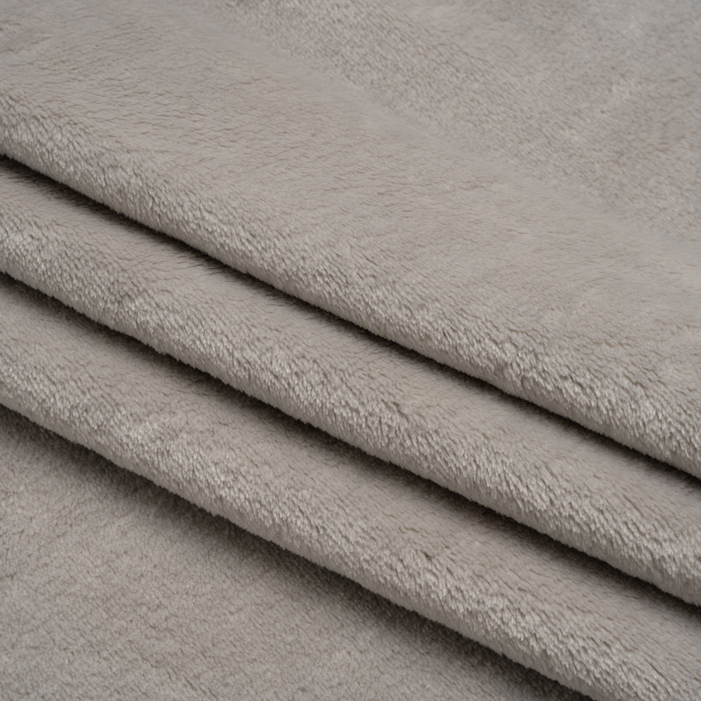 Howling winds will rush right past you in this Platinum Double Faced Minky Fleece—featuring a super-soft hand and fluid drape.Suggested Projects: Hoodies, Pants, Pajama Tops, Blankets, Plush ToysContent: 100% PolyesterStretch: 15% WeftwiseOpacity: OpaqueCreate your own cozy corner in every room you enter wearing this platinum gray minky fleece. A super-soft hand combines with a 15% stretch through the weft and a fluid drape that you’ll yearn to wrap yourself up in—and never want to take off! This double-faced fleece is ideal for luxurious loungewear pieces such as wide-leg pajama pants, oversized robes, and button-up pajama tops that you’ll want to lay the day away in, along with cozy blankets and quilt backings to keep you warm any time. Opaque, a lining isn’t necessary.