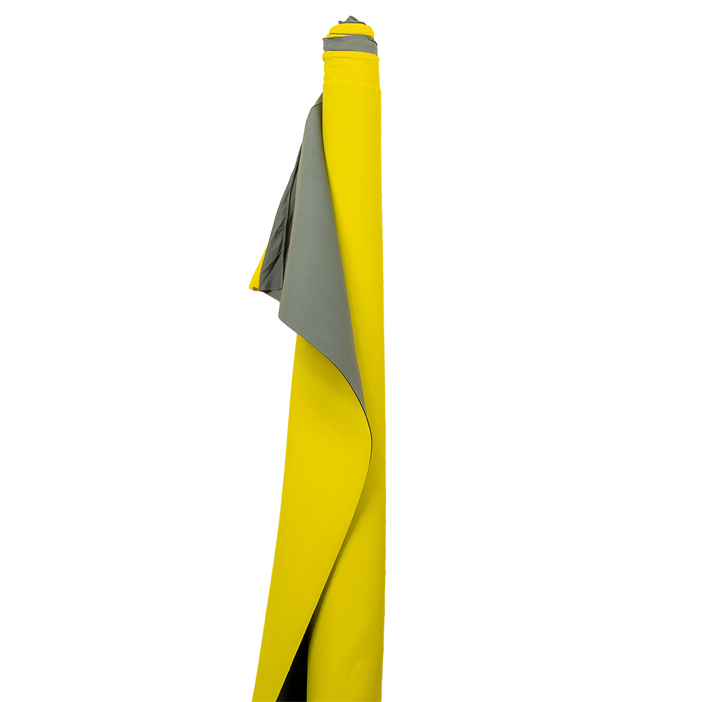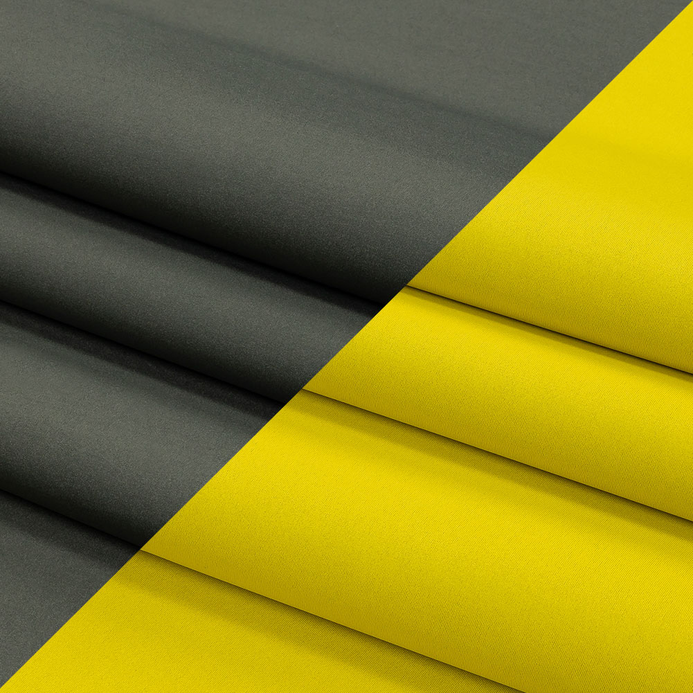 Feel the pull of this Magnet and Maize Double-Faced Stretch Neoprene! Available in a 3-yard roll, it features a structural drape, moderate all-way stretch, and thick construction—ensuring complete opacity!Suggested Projects: Wetsuits, Leggings, Shorts, DressesContent: 100% PolyesterStretch: 25% All-WayOpacity: OpaqueFrom neutral and minimal to bright and eclectic, this gray and bright yellow neoprene has a shade for everyone. Displaying two knit faces—one gray and one bold yellow—with thick rubbery foam in between, revel in this knit's voluminous structural drape. With a 2.5 mm gauge and a 25% all-way stretch, lean into reversible activewear with wetsuits and scuba gear, or aim for the avant garde with structured cape-sleeve dresses and oversized blazers. For practical accessories, one could also craft laptop covers, backpacks, drink cozies, lunch bags, and more! Please note: This fabric is available in a 3 yd roll.