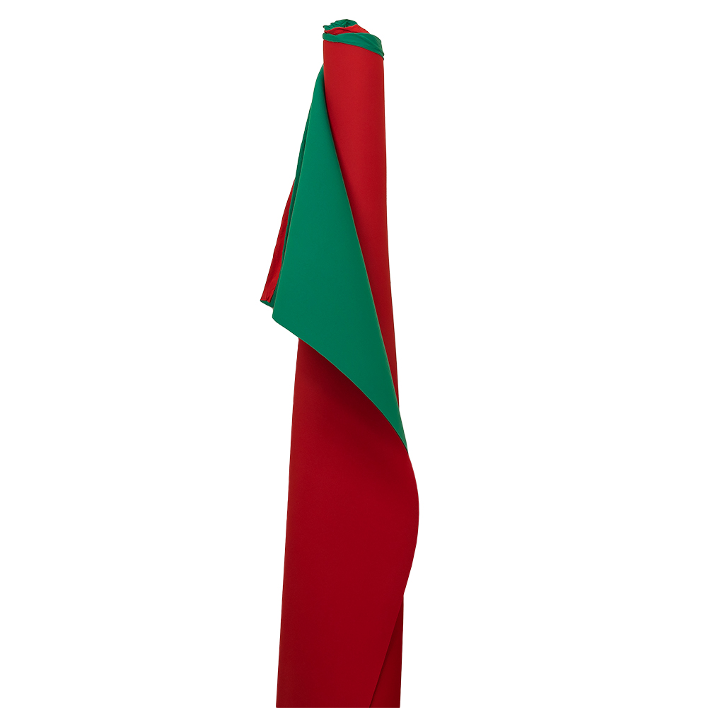 There is no need to hike the alpines when this Tango Red and Alpine Green Double-Faced Stretch Neoprene is so much closer! Available in a 3-yard roll, it features a structural drape, moderate all-way stretch, and thick construction—ensuring complete opacity!Suggested Projects: Wetsuits, Leggings, Shorts, DressesContent: 100% PolyesterStretch: 25% All-WayOpacity: OpaqueAs though under the shade of towering pines, keep cool this summer in this red and green neoprene. Displaying two knit faces—one red and one green—with thick rubbery foam in between, revel in this knit's voluminous structural drape. With a 2.5 mm gauge and a 25% all-way stretch, lean into reversible activewear with wetsuits and scuba gear, or aim for the avant garde with structured cape-sleeve dresses and oversized blazers. For practical accessories, one could also craft laptop covers, backpacks, drink cozies, lunch bags, and more! Please note: This fabric is available in a 3 yd roll.
