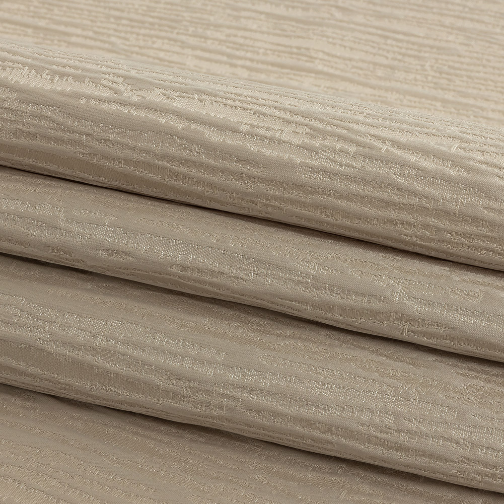 Are you a fan of zebra print? Then you'll love this shimmering British Imported Champagne Striated Drapery Jacquard. While the face side promises a slightly luminous, single-toned striated pattern, the reverse side offers a breathtaking two-toned striated appearance that shimmers in the light. It has the best of both worlds! The soft and slightly tactile hand attractively complements the fluid drape, making this drapery woven ideal for ripple fold curtains, as this fabric will elegantly reflect the sunlight when it catches on the reverse side. Though mostly opaque, this drapery fabric may benefit from a lining to achieve a full blackout effect and to protect the fibers from sun damage and fading, especially in high-sun windows. Cleaning Instructions: This fabric can be dry cleaned with any solvent except tetrachlorethylene or machine washed with a maximum temperature of 40° Celsius. This fabric can be tumble dried on a low heat setting. Do not iron or bleach this material.
