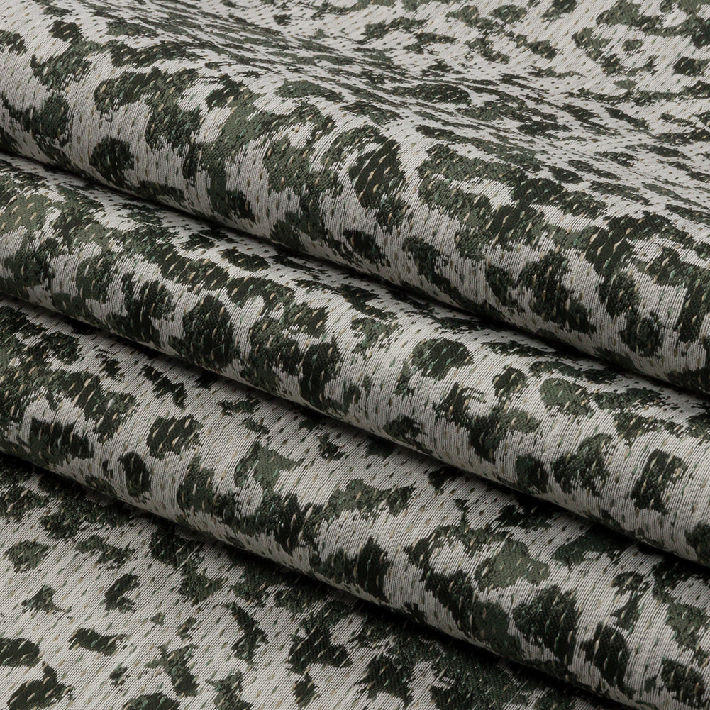In deep green hues seen after a summer rainstorm, this British Imported Fern Spectacular Spots Drapery Jacquard is wild and lush. This supple fabric muses over the luxurious coat of a cheetah, presenting a vague collection of green spots, against a beige background, that is reminiscent of the grassland cat. With a less distinct display of animal print, it is easy to introduce patterns with character to your home. The hand is sleek yet slightly tactile, textured by the complex Jacquard weave. Create floor-to-ceiling curtains, wild valances, statement drapes, and more! Mostly opaque, a lining may be necessary for a complete black-out effect.
