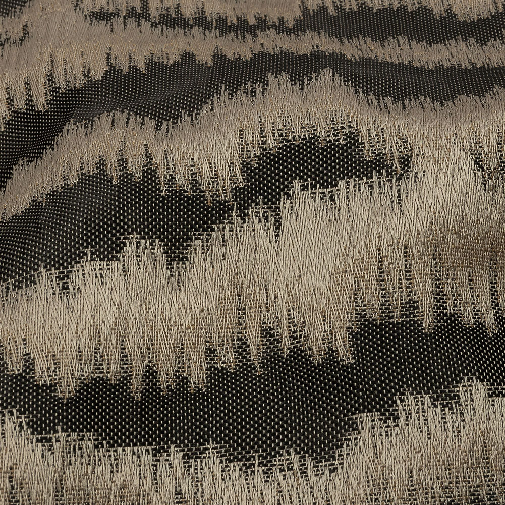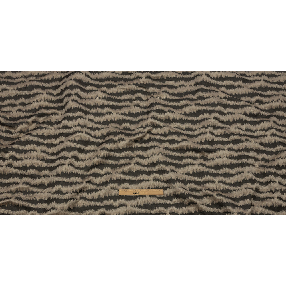 Create an out-of-this-world design with this meteorite-inspired British Imported Fossil Abstract Stripes Drapery Jacquard! Channels of near-black seem to be dug out between rugged stripes of dark beige, altogether with a crisp, lightly textured surface. With a malleable drape and no stretch, transform this material into dramatic drapes, classic curtains, and all sorts of other window treatments, then bring the room together with light upholstery projects or small accessories like throw pillows and wall hangings. Opaque, linings are optional but may be desired for sun protection in some windows.
