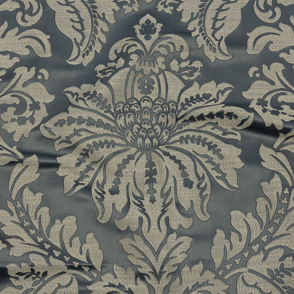 Find magic for your home with this British Imported Graphite Ornate Leaves Drapery Jacquard. A cool gray satin-like ground features an ornate leaf pattern that feels embroidered due to its Jacquard weave structure. With a smooth, crisp hand and voluminous drape, this fabric is perfect for luxurious home decor projects. Craft curtains, drape swags, and valances, or use this material in light upholstery projects like headboards, throw pillows, window seat cushions, and more. Opaque on its own, a drapery lining can be used to protect against sun damage if desired.