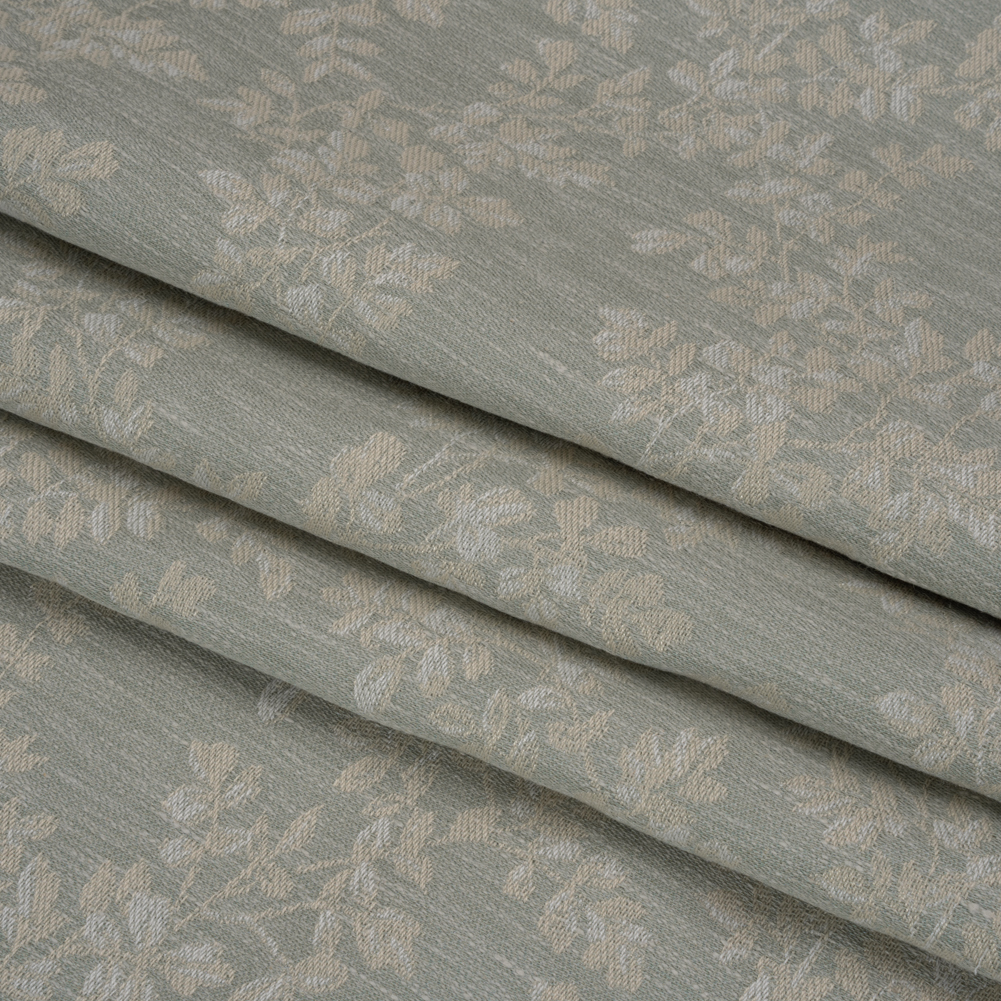 Find serene solitude among this British Imported Sage Leaves on the Vine Drapery Jacquard.