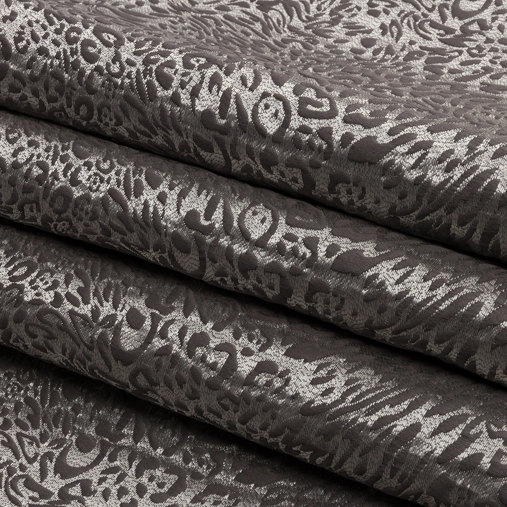 Wipe the slate clean and start decorating with this British Imported Slate Running Leopard Drapery Jacquard. A silver base features slate gray abstracted leopard spots, with the Jacquard weave structure giving it a tactile, embroidery-like feel. The flexible drape and no stretch make this fabric perfect for dramatic drapes and long, pooling curtains, elegant swags, valances, or even light upholstery projects like throw pillows and upholstered headboards. If desired, a lining can be added to lessen sun damage, but it's unnecessary for most projects.